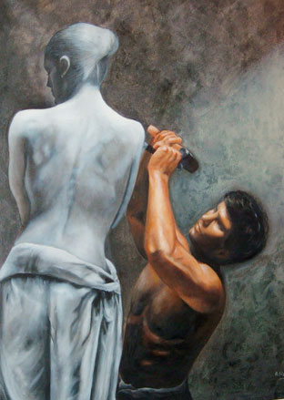 comenzó a pintar en forma autodidacta, para luego seguir perfeccionándose con destacados maestros tales como: